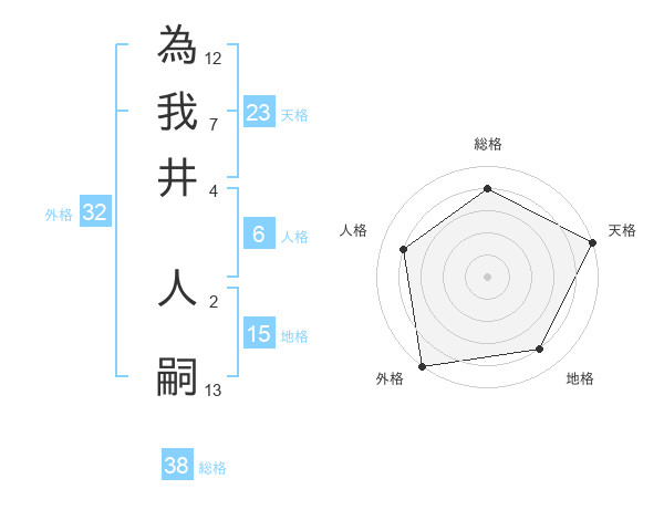 為我井 人嗣さんの総格は38画の4点!