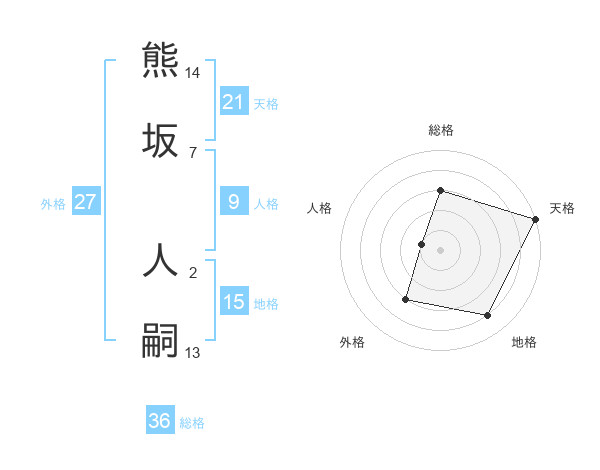 熊坂 人嗣さんの天格は21画の5点!
