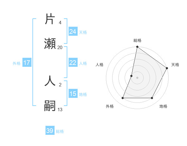 片瀬 人嗣さんを姓名の画数から五運を鑑定