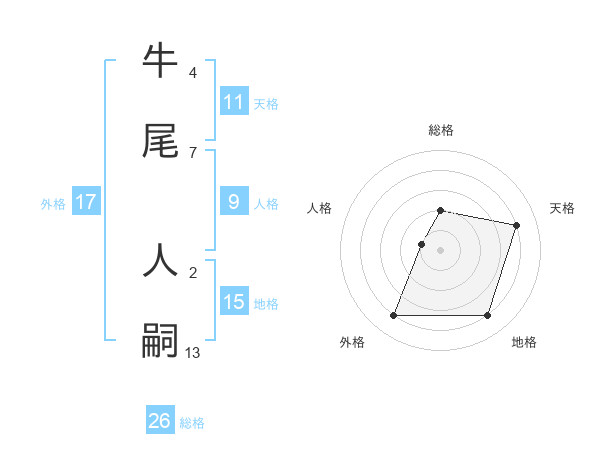 牛尾 人嗣さんの天格は11画の4点!
