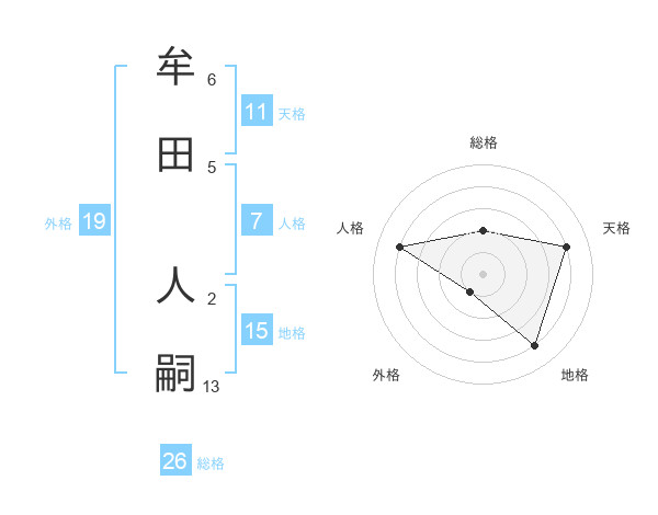 牟田 人嗣さんの天格は11画の4点!