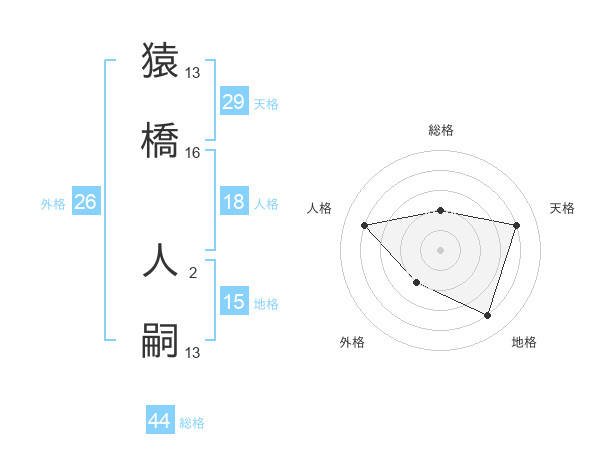 猿橋 人嗣さんの総格は44画の2点!