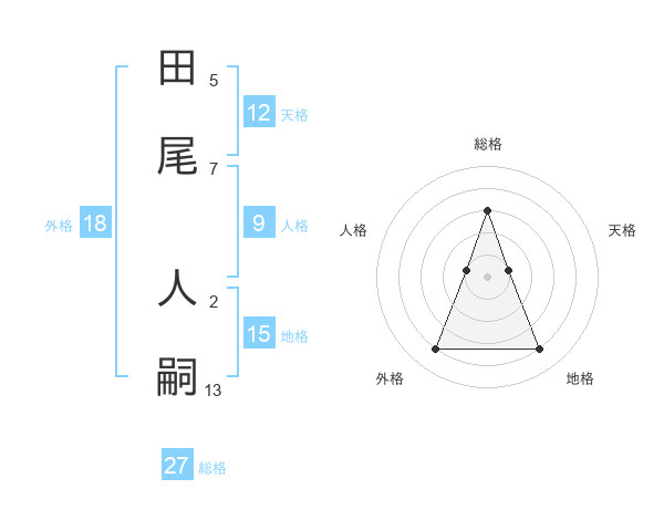 田尾 人嗣さんの総格は27画の3点!
