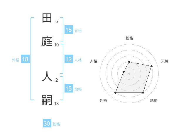 田庭 人嗣さんの天格は15画の4点!