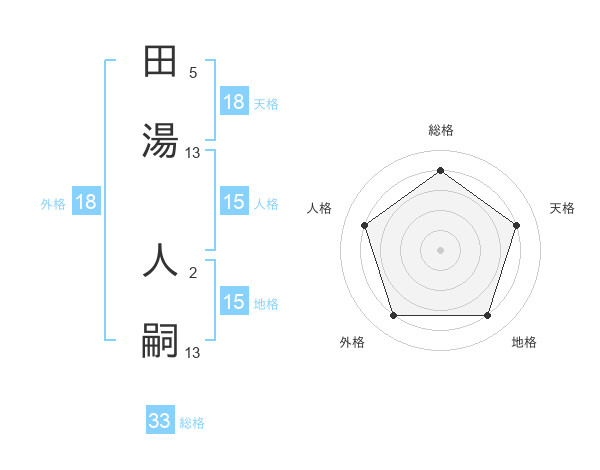 田湯 人嗣さんの天格は18画の4点!