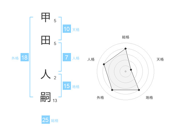 甲田 人嗣さんの天格は10画の1点!