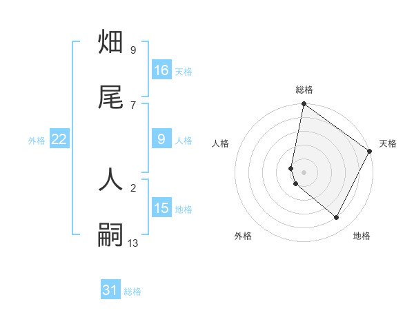 畑尾 人嗣さんの総格は31画の5点!