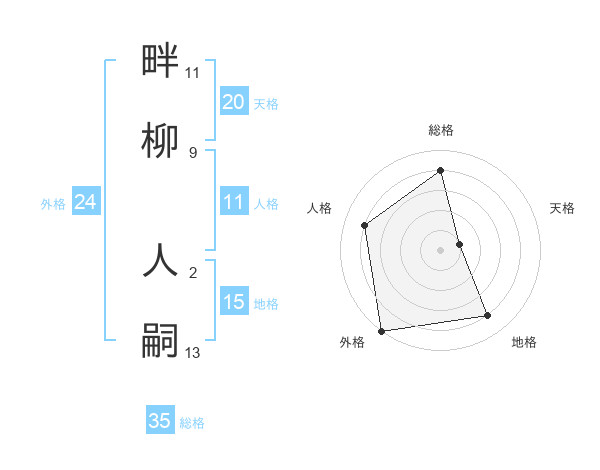畔柳 人嗣さんの総格は35画の4点!