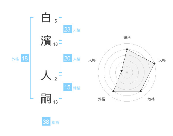 白濱 人嗣さんの総格は38画の4点!