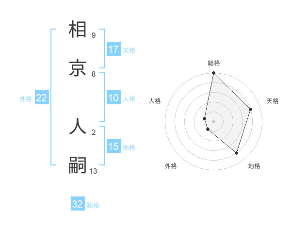 相京 人嗣さんの総格は32画の5点!
