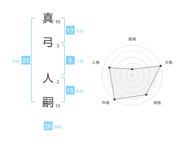 真弓 人嗣さんの天格は13画の5点!