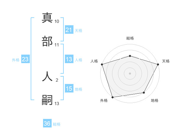 真部 人嗣さんの天格は21画の5点!