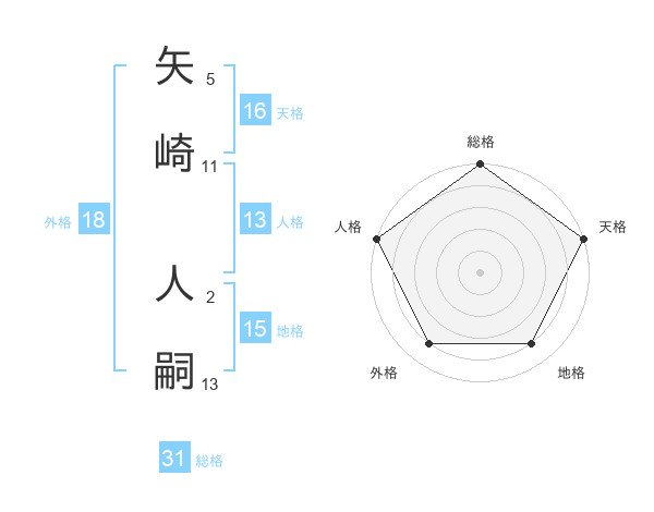 矢崎 人嗣さんの総格は31画の5点!