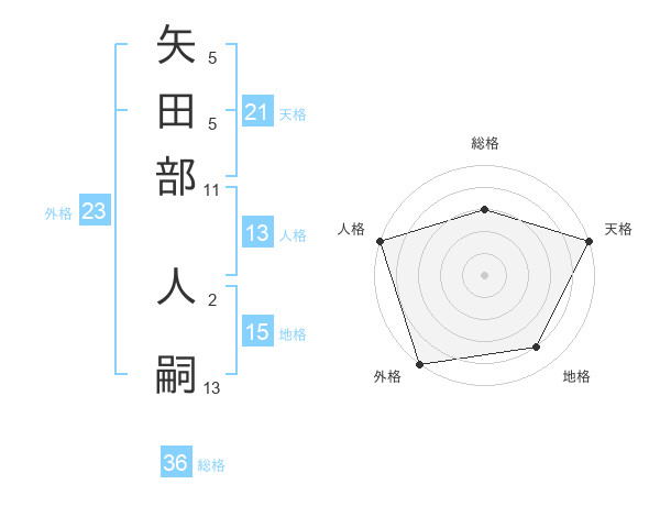 矢田部 人嗣さんを姓名の画数から五運を鑑定