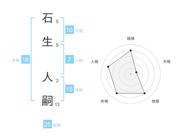 石生 人嗣さんを姓名の画数から五運を鑑定