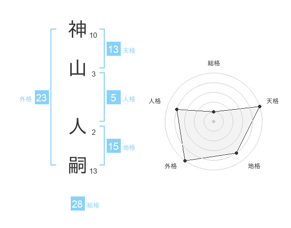 神山 人嗣さんの天格は13画の5点!