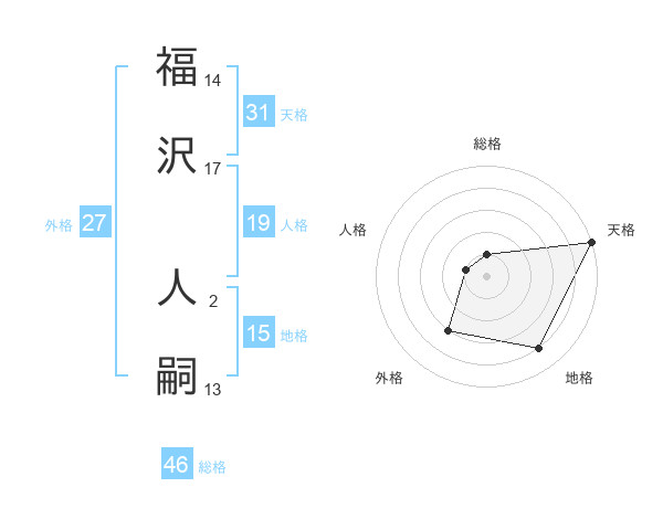 福沢 人嗣さんを姓名の画数から五運を鑑定