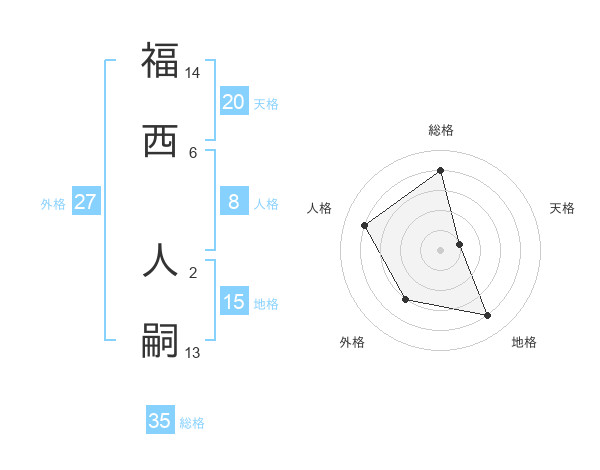 福西 人嗣さんの総格は35画の4点!