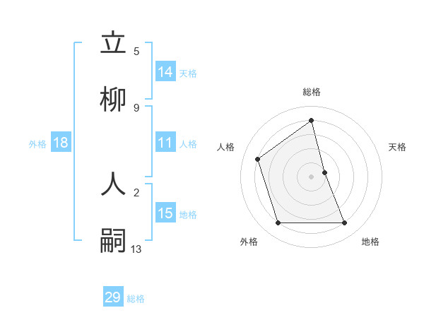 立柳 人嗣さんの総格は29画の4点!