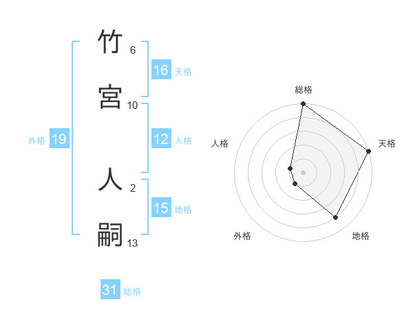 竹宮 人嗣さんの総格は31画の5点!
