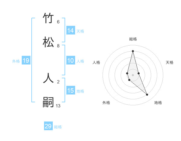 竹松 人嗣さんの総格は29画の4点!