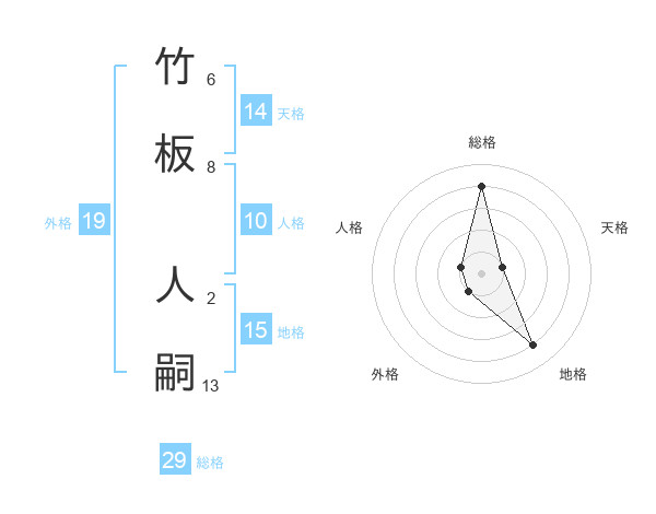 竹板 人嗣さんの総格は29画の4点!