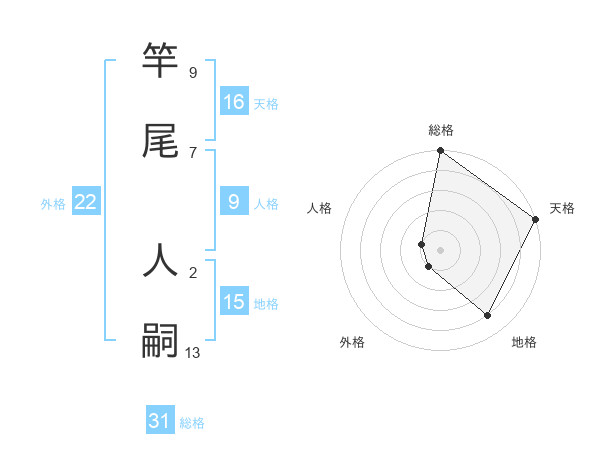 竿尾 人嗣さんの総格は31画の5点!