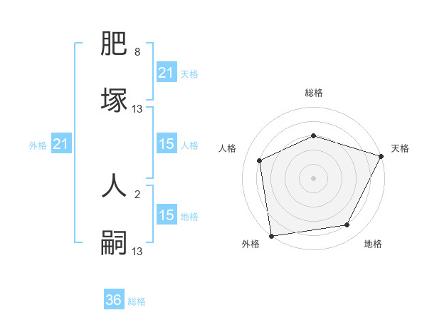 肥塚 人嗣さんの天格は21画の5点!