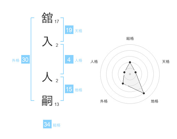 舘入 人嗣さんの総格は34画の2点!