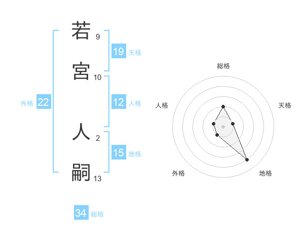 若宮 人嗣さんの総格は34画の2点!