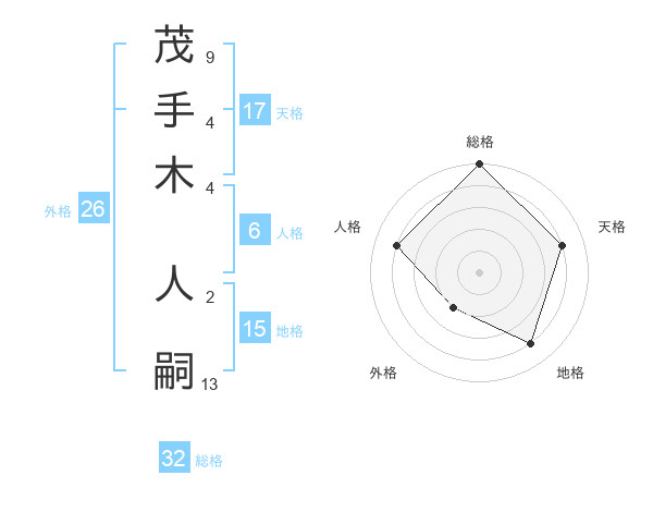 茂手木 人嗣さんの総格は32画の5点!