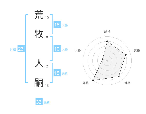 荒牧 人嗣さんの外格は23画の5点!