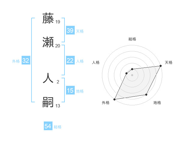 藤瀬 人嗣さんの天格は39画の5点!