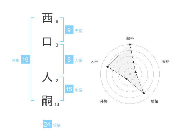 西口 人嗣さんを姓名の画数から五運を鑑定