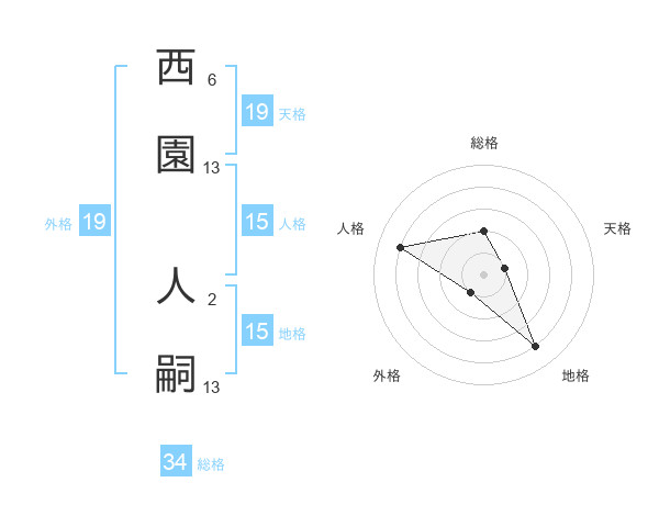 西園 人嗣さんを姓名の画数から五運を鑑定