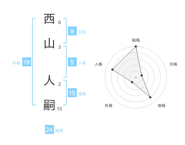 西山 人嗣さんの総格は24画の5点!