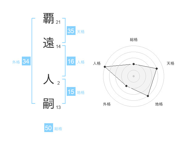 覇遠 人嗣さんを姓名の画数から五運を鑑定