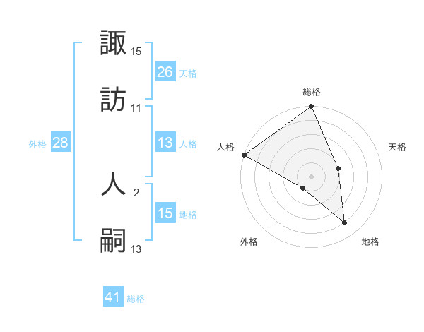 諏訪 人嗣さんを姓名の画数から五運を鑑定