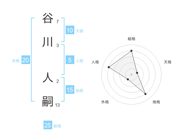 谷川 人嗣さんを姓名の画数から五運を鑑定