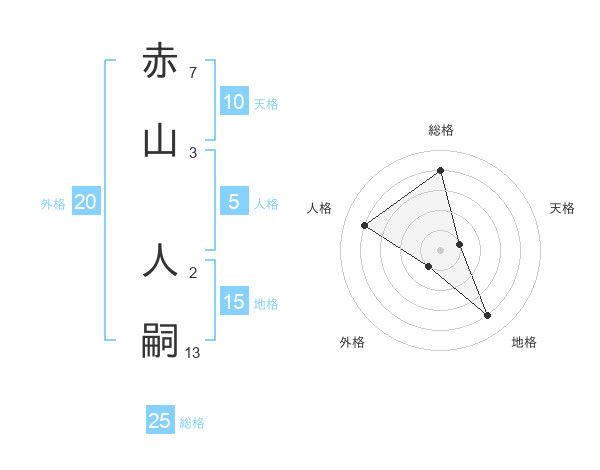 赤山 人嗣さんの総格は25画の4点!