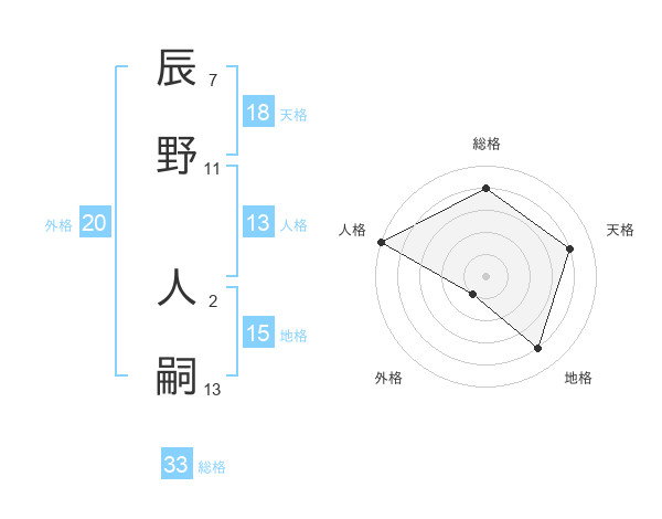 辰野 人嗣さんを姓名の画数から五運を鑑定