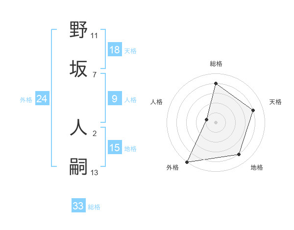 野坂 人嗣さんを姓名の画数から五運を鑑定