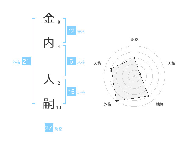 金内 人嗣さんを姓名の画数から五運を鑑定