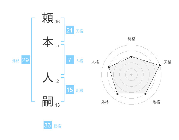 頼本 人嗣さんの天格は21画の5点!