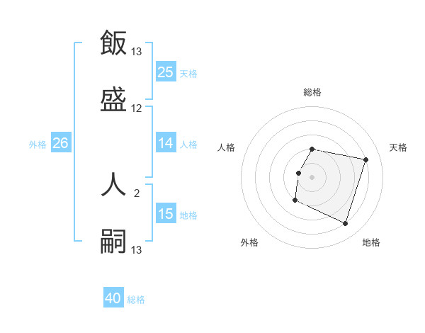 飯盛 人嗣さんの天格は25画の4点!