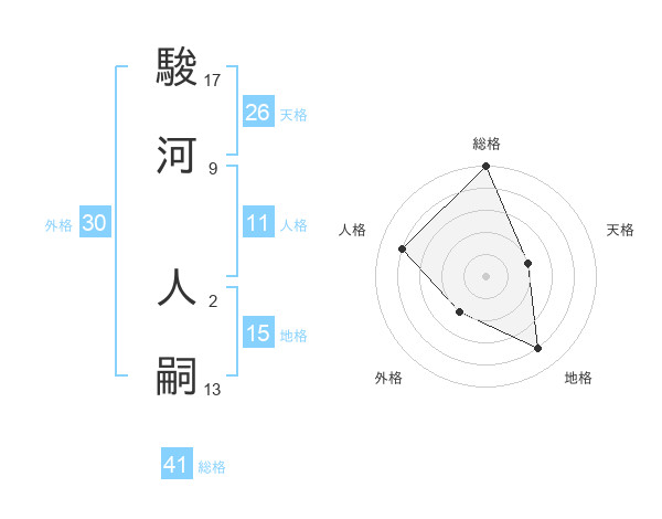 駿河 人嗣さんを姓名の画数から五運を鑑定