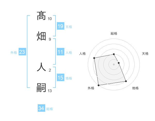 髙畑 人嗣さんの総格は34画の2点!