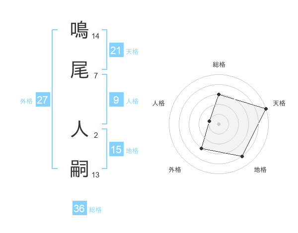 鳴尾 人嗣さんの天格は21画の5点!