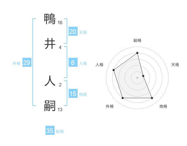 鴨井 人嗣さんの総格は35画の4点!