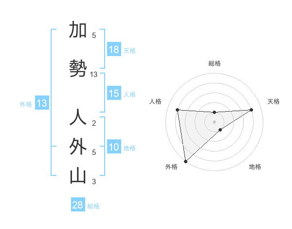 加勢 人外山さんの外格は13画の5点!